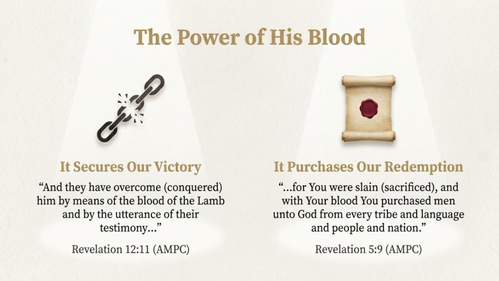 - In what area of your life do you need to apply the victory won by the blood of the Lamb?