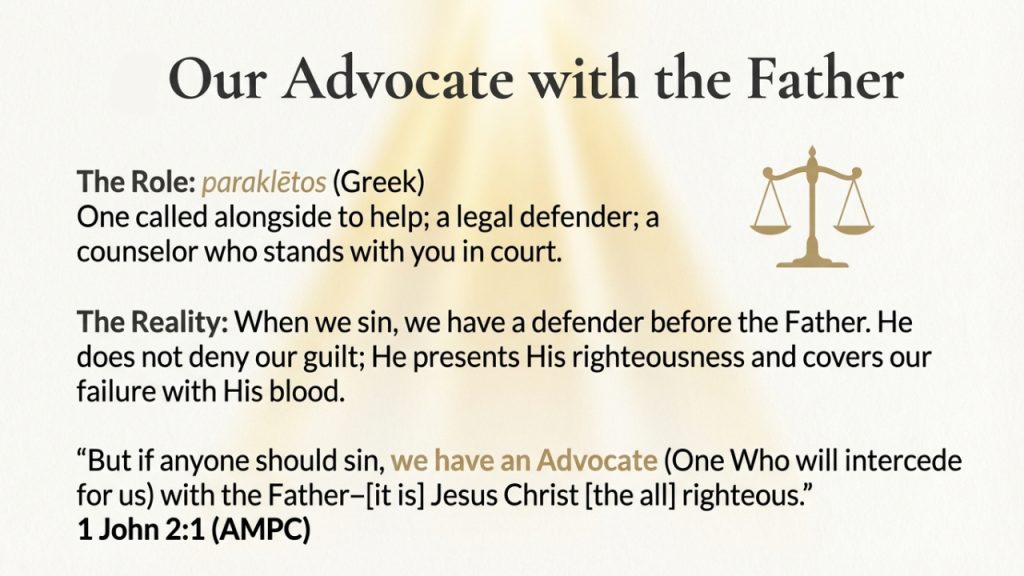 - When you feel accused by your own heart or by the enemy, how can you remind yourself that you have an Advocate with the Father?